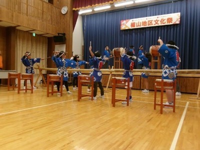 地区の文化祭で披露した楯山太鼓